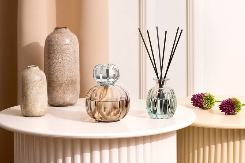 In het begin bood ons merk een innovatief object om de sfeer in gesloten ruimtes te zuiveren. Vervolgens evolueerde onze collectie en door de jaren heen ontstonden er nieuwe producten. Tegenwoordig omvat het verschillende geparfumeerde objecten die worden gekenmerkt door hun elegantie en hun reuksignatuur. Ook voor onze Lampe en boeketten hebben wij talloze geuren ontwikkeld, met bloemige, fruitige, gastronomische, oriëntaalse, frisse of pure tonen.